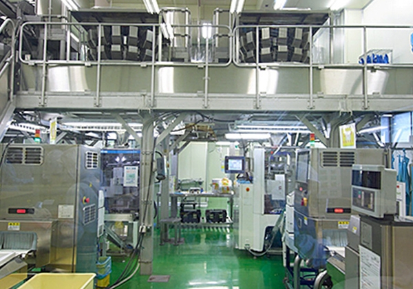 東西2カ所の冷凍倉庫建屋内にリパック工場を併設しています。倉庫と工場が一体化されているため、物流工程の効率化が図れます。また各工場には品質検査室が設置され、原料から製品までの自主検査を行うことで、食の安全・安心をご提供します。関東工場は2021年7月に「FSSC22000」を取得しており、国際基準の品質に適合した工場です。関西工場は 2024年2月に新たに関西支店(大阪府箕面市)に施設された最新鋭機器を備えた工場です。