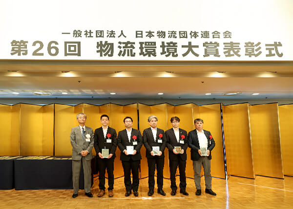 2025年6月、ヒューテックノオリンは一般社団法人日本物流団体連合会より第26回物流環境大賞において「サステナブル活動賞」を5社で共同受賞しました。これは物流部門において優れた環境保全活動や環境啓発活動、あるいは先進的な技術開発・活用などを行うことにより、環境負荷低減の面から物流業の発展に貢献された事業者等を表彰するもので、ヒューテックノオリン他4社共同による、冷凍31ftコンテナを利用した環境に優しく持続可能な鉄道輸送へのモーダルシフトが評価されました。