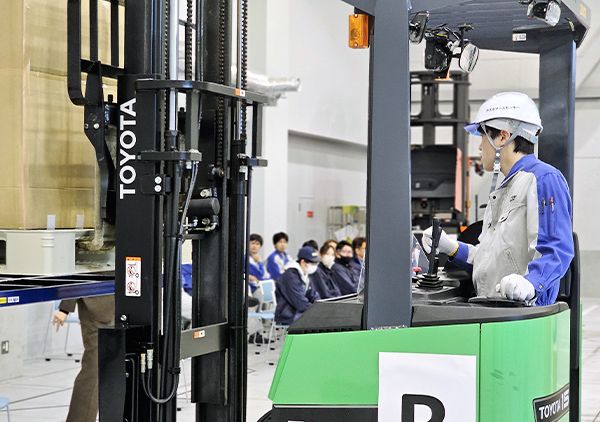 具体的にはフォークリフト、トラックのテールゲートリフター、カゴ台車などの運転や操作ルールの遵守、トラックのコンテナや運転席からの転落防止、結露・凍結箇所での転倒防止、冷凍環境での凍傷や夏場の熱中症の防止、腰痛防止やメンタルヘルス(心の健康)の増進に注力しています。